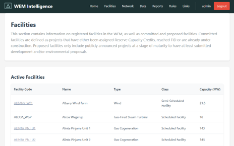 The platform brings together market data, network topology, facility information, rules, and analysis, reducing the time and effort required to understand the WEM and stay up to date with change.