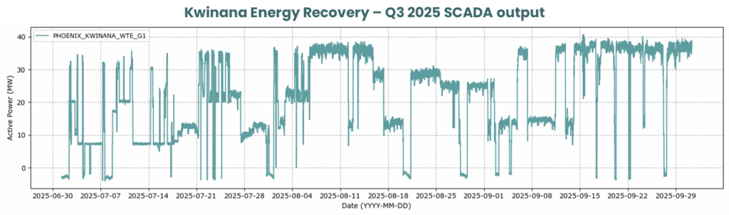 Kwinana Energy Recovery (PHOENIX_KWINANA_WTE_G1) underwent commissioning tests in Q3 2025 and appears to be progressing well: